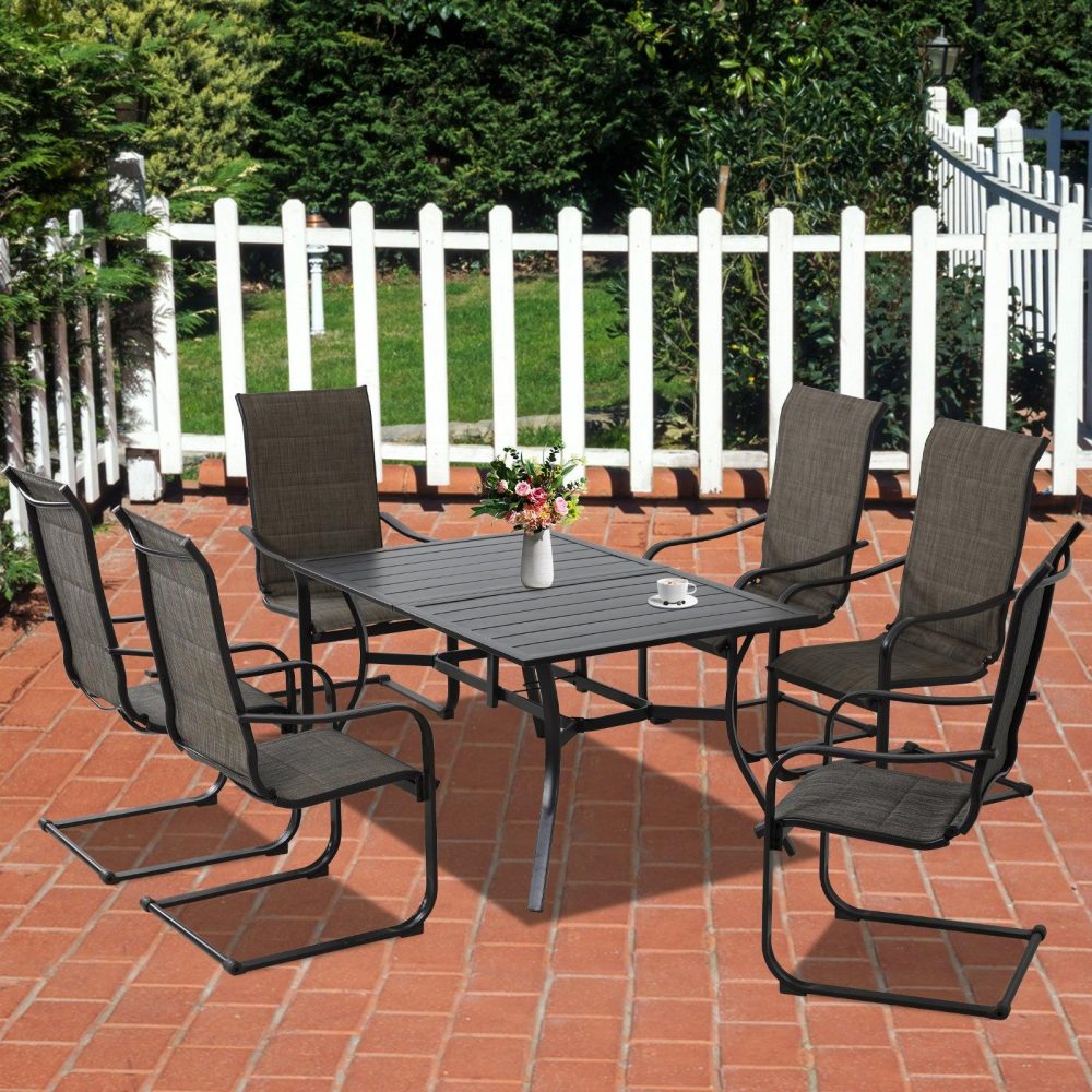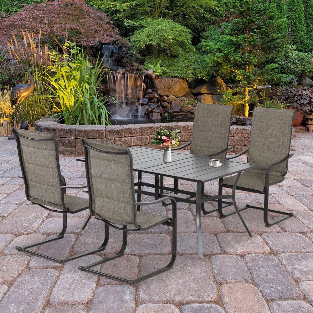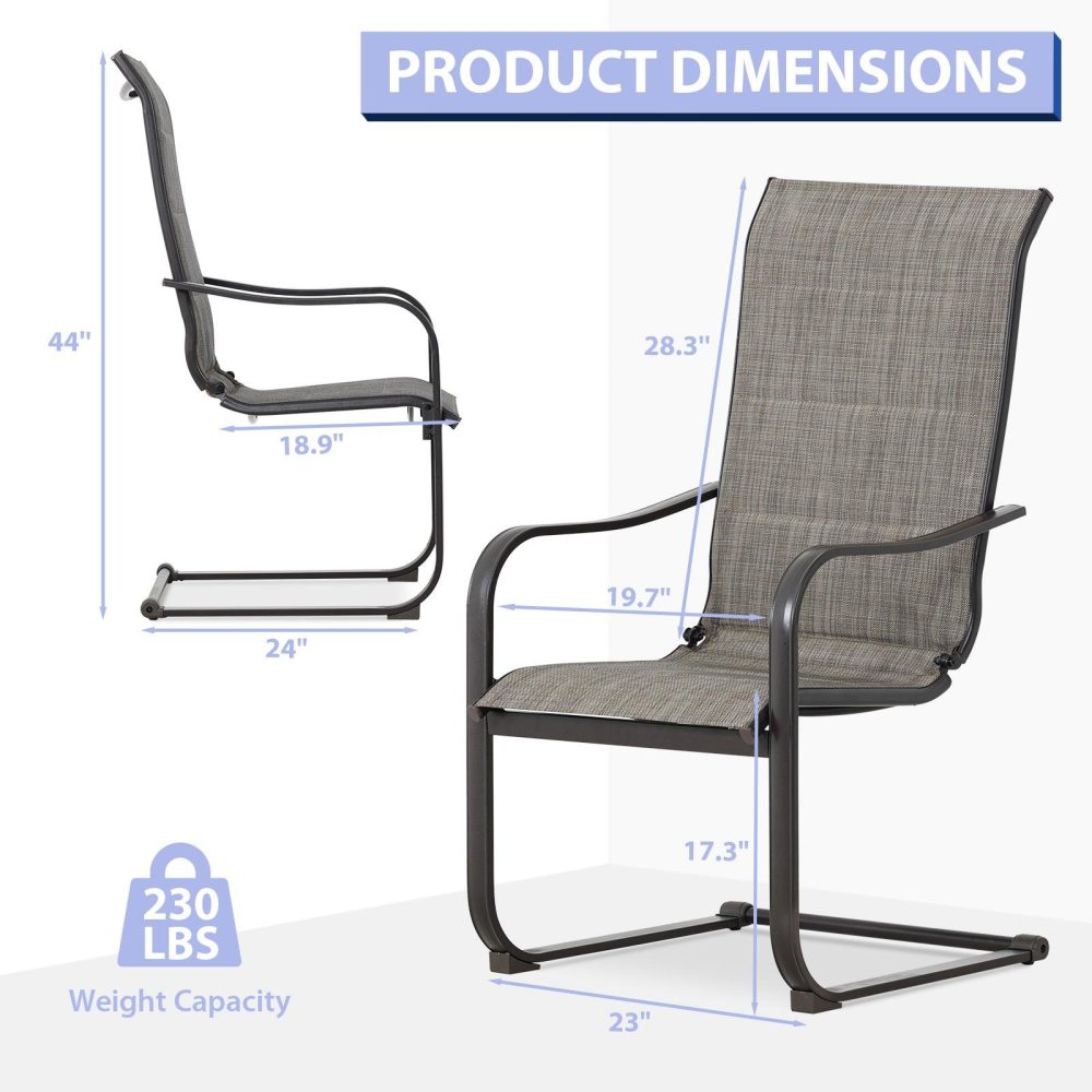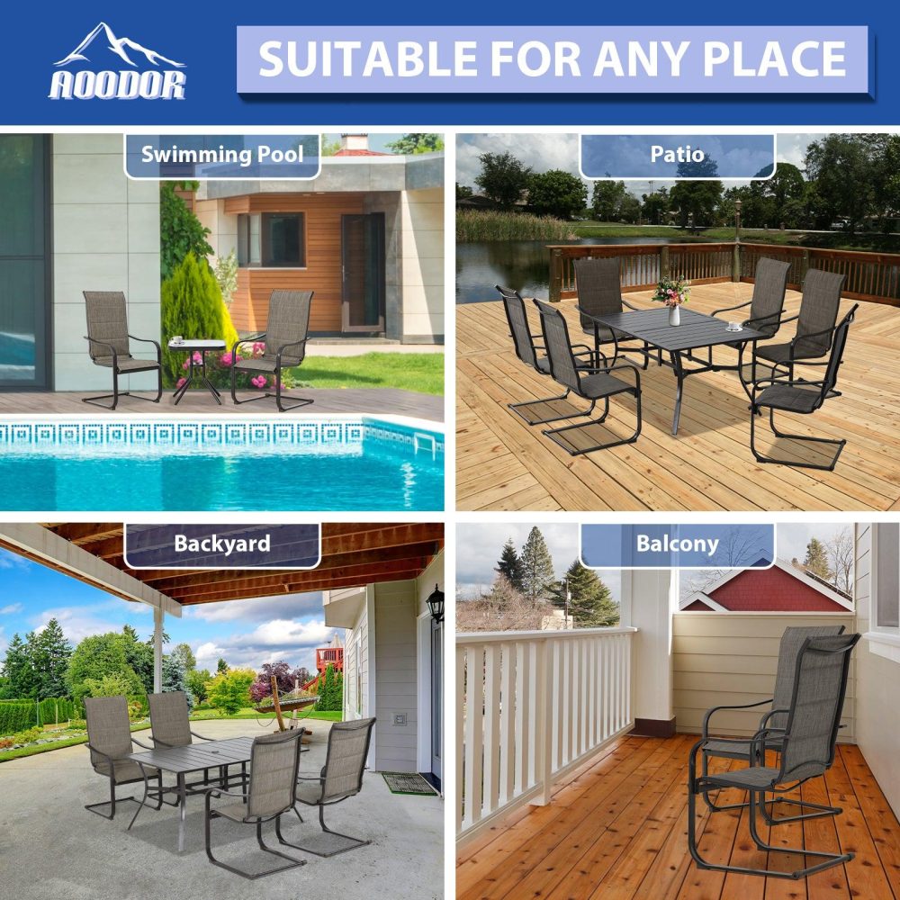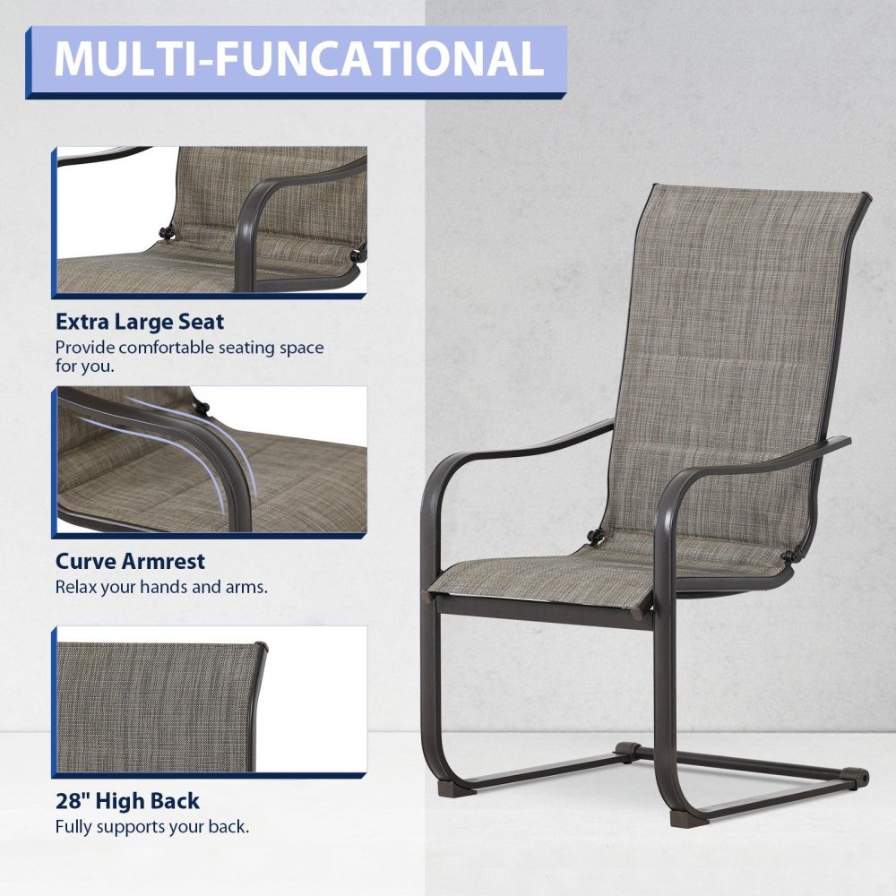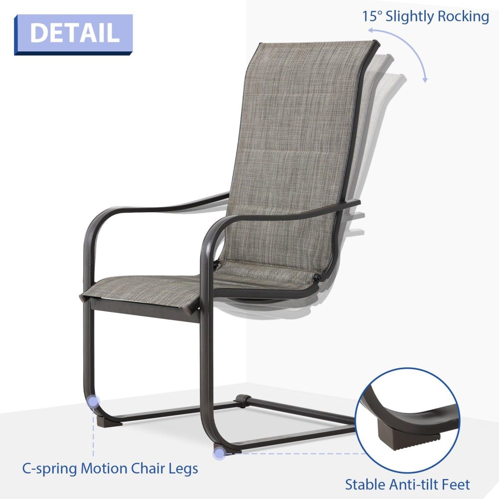 【Cスプリングモーション】- 当社のパティオダイニングチェアは、Cスプリングデザインを巧みに採用し、微妙なロッキングモーションでリラックス効果を高め、全体的な体験を向上させます。【プレミアムテキスタイルファブリック】- 高品質のテキスタイルファブリックで作られた当社の中庭用ダイニングチェアは、通気性と弾力性に優れ、柔らかいクッションと組み合わせることで、十分な通気性と快適さと優しいサポートの両方を実現します。